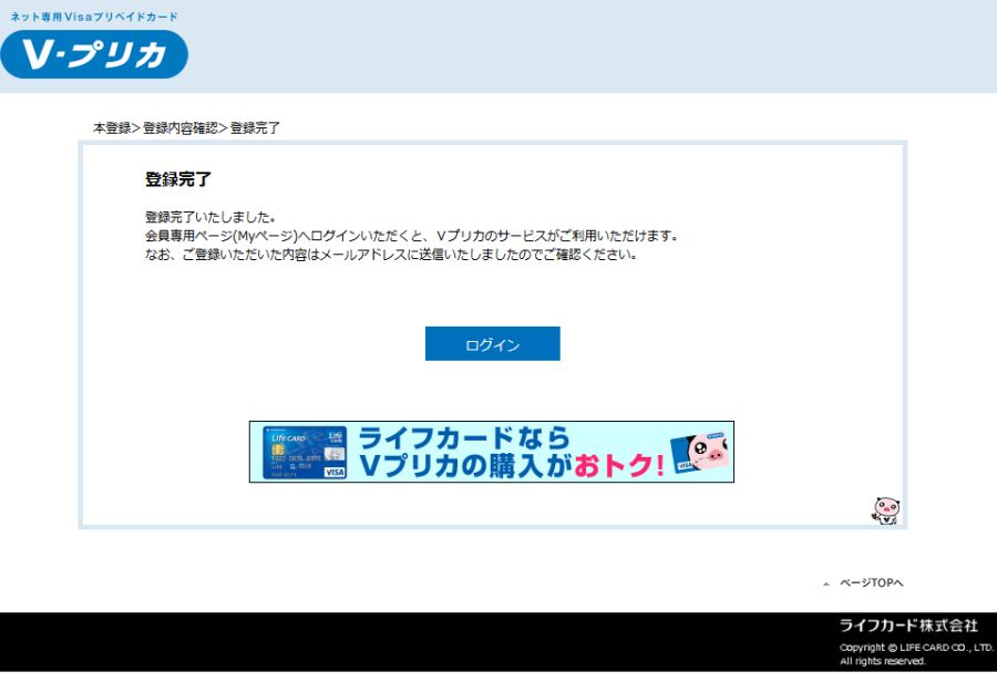 以上でVプリカやVプリカギフトの無料アカウント開設は完了です。