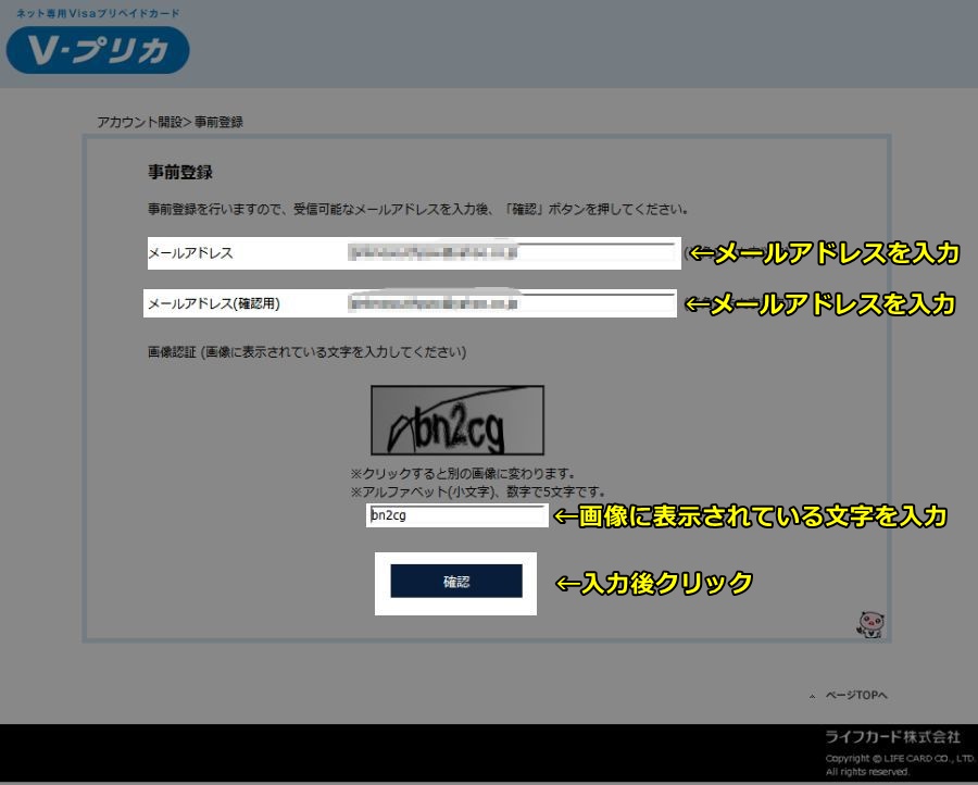 ※画像認証コードが読みにくい場合はクリックすると別の画像コードに変わりますのでその画像認証コードを入力しましょう。