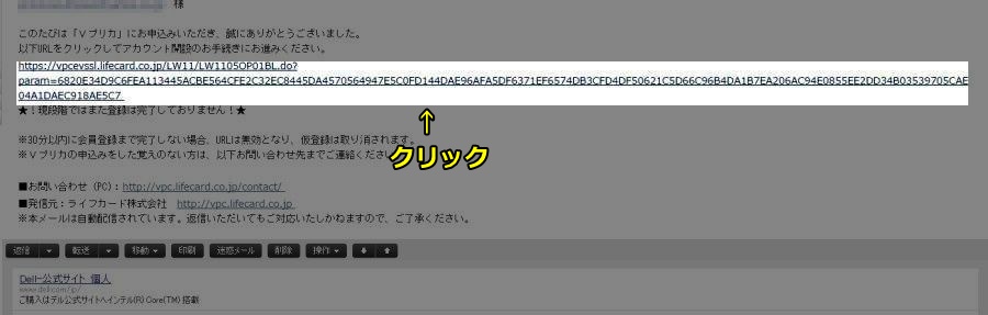 事前登録で入力したメールアドレス宛にメールが届いていますので、そのメールを開くと下の図のように本登録のアドレスが記載されているのでそのアドレスをクリック。